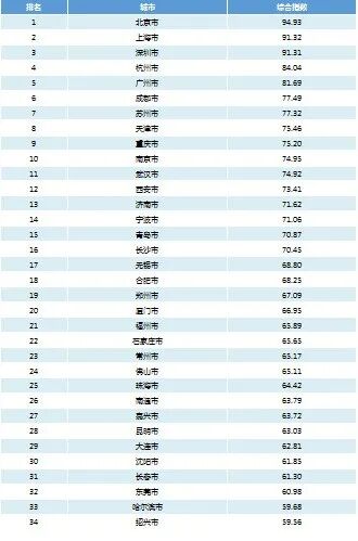 北京、上海和深圳领跑2020中国“双创”金融指数百强城市。作为三大全国性金融中心,京沪深三城对“双创”事业发展的金融服务支持水平明显优于其他城市。本期三者综合指数得分均超过了90分,较后来者的指数得分领先幅度明显。