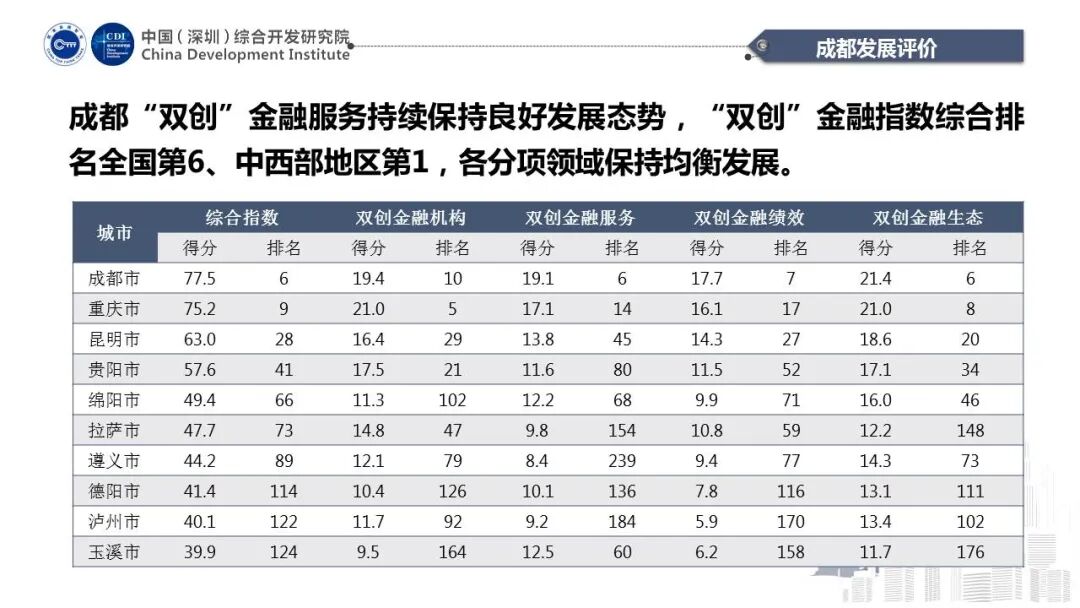 除此之外,成渝双城经济圈表现可圈可点。成都和重庆本次双双进入综合排名十强行列,分别排名全国第6和第9。